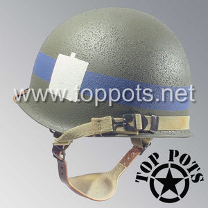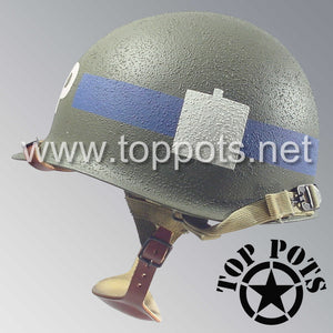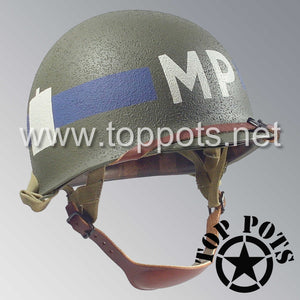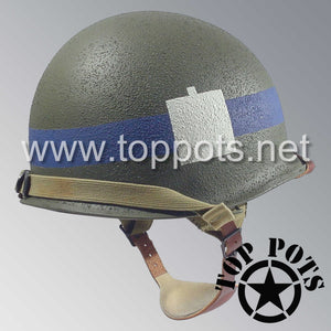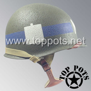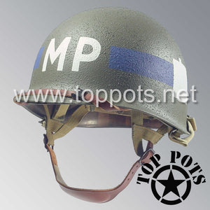 WWII US Army Restored Original M1C Paratrooper Airborne Helmet Swivel Bale Shell and Liner with 101st Airborne Divisional Police Platoon Emblem