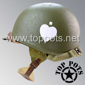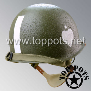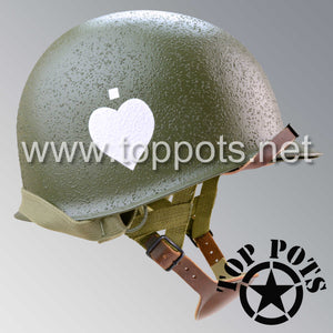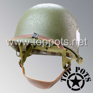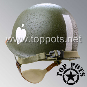 WWII US Army Restored Original M2 Paratrooper Airborne Helmet D Bale Shell and Liner with 502nd HQ Battalion PIR Officer Emblem