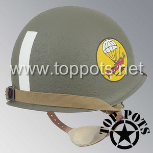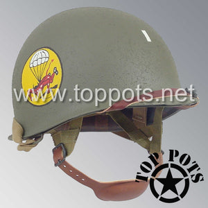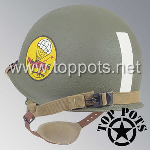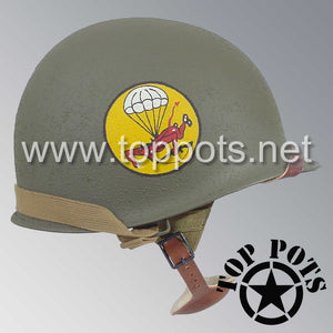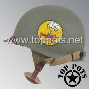 WWII US Army Restored Original M1C Paratrooper Airborne Helmet Swivel Bale Shell and Liner with 508th PIR Patch Officer Emblem