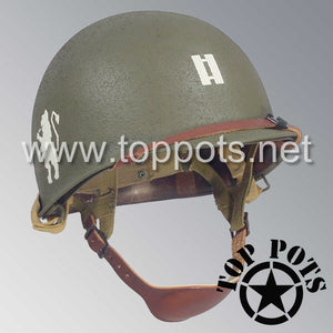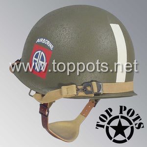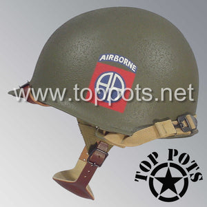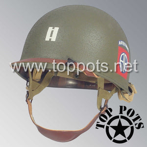 WWII US Army Restored Original M1C Paratrooper Airborne Helmet Swivel Bale Shell and Liner with 82nd Airborne 505th Officer Emblem