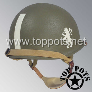 So, if you are looking for a US WWII M1C swivel bale jump helmet with the most authentic Type II Mil-Spec 530 11 row weave chain-pattern, A yoke and Herring Bone Twill suspension webbing, this is your helmet. This particular helmet represents the standard model, which would have been used in combat operations such as the D Day and Market Garden. This is simply the best WWII M1C paratrooper helmet for re-enactors, air-soft clubs and collectors made exclusively by Top Pots.