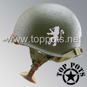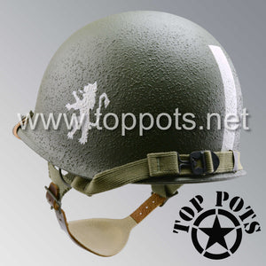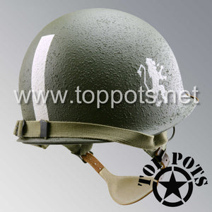 So, if you are looking for a US WWII D ring helmet with the most authentic Type II Mil-Spec 530 11 row weave chain-pattern, A yoke and Herring Bone Twill suspension webbing, this is your helmet. This particular helmet represents the earlier model, which would have been used in combat operations such as the D Day jump into Normandy. This is simply the best WWII M2 helmet for re-enactors, air-soft clubs and collectors made exclusively by Top Pots.