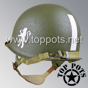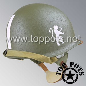 So, if you are looking for a US WWII D ring helmet with the most authentic Type II Mil-Spec 530 11 row weave chain-pattern, A yoke and Herring Bone Twill suspension webbing, this is your helmet. This particular helmet represents the earlier model, which would have been used in combat operations such as the D Day jump into Normandy. This is simply the best WWII M2 helmet for re-enactors, air-soft clubs and collectors made exclusively by Top Pots.