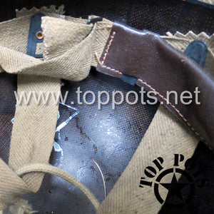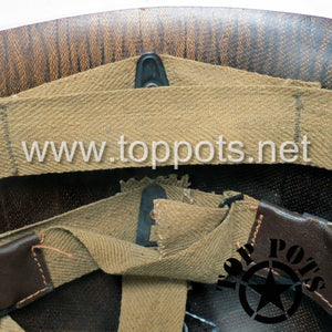 This material is needle loomed manufactured webbing, which means it was made on a modern loom, which leaves a distinctive line on one side of the webbing. This is totally different to true WWII era shuttle loom helmet chin strap material, which portrays a beautiful raw edge appearance on both sides. To get around this, we applied a catch-stitch, which hides the tell-tale need loom line on the side of the material, but it is noticeable for those who know what they are looking for with their liner webbing.