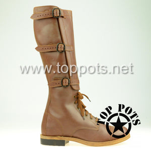 WWII US Army Reproduction M1940 Leather Cavalry Officer Uniform Mounted Boots - 3 Buckle or Laced Front