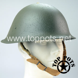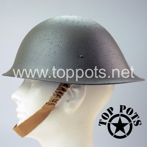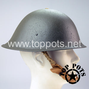 This is a reproduction of the WWII British Army MKIV MK4 Enlisted Turtle Helmet with Field Textured Finish. Worn on D Day by British army personnel, this is a restored original MKIV MK4 helmet shell complete with reproduction liner, MKII chinstraps and field textured finish. Liner sizes are based on head circumference, so reach out to us if you need help determining size.