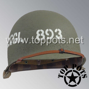 WWII US Army Restored Original M1 Infantry Helmet Fix Bale Shell and Liner with Logistic Unit Emblem and Early War Leather Chinstrap