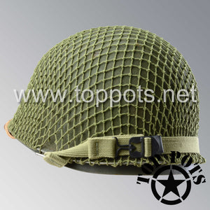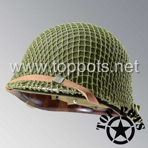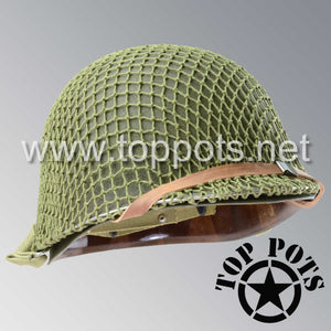 WWII US Army Restored Original M1 Infantry Helmet Swivel Bale Schlueter Shell and Liner with Olive Drab 3 Net