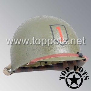 WWII US Army Restored Original M1 Infantry Helmet Swivel Bale Shell and Liner with 1st Infantry Division Emblem