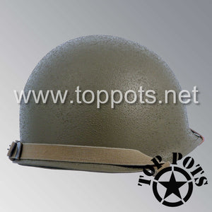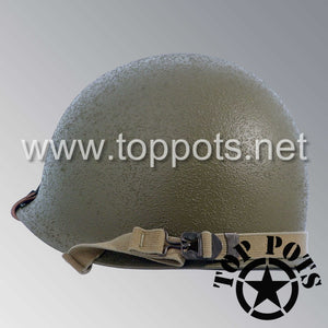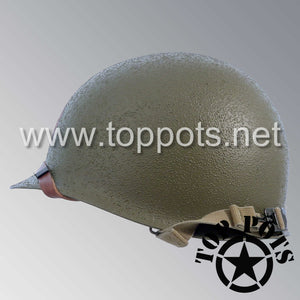 So, if you are looking for a US WWII swivel bale helmet with the most authentic Type II Mil-Spec 530 11 row weave chain-pattern and Herring Bone Twill suspension webbing, this is your helmet. This particular helmet represents the standard model, which would have been used in combat operations such as D Day, Operation Market Garden and the Battle of Okinawa. This is simply the best WWII M1 helmet for re-enactors, air-soft clubs and collectors made exclusively by Top Pots.