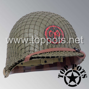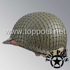WWII US Army Restored Original M1 Infantry Helmet Swivel Bale Shell and Liner with 27th Infantry Division Emblem and OD 7 Net