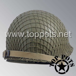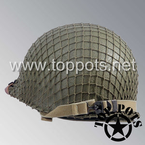 So, if you are looking for a US WWII swivel bale helmet with the most authentic Type II Mil-Spec 530 11 row weave chain-pattern and Herring Bone Twill suspension webbing, this is your helmet. This particular helmet represents the standard model, which would have been used in combat operations such as D Day, Operation Market Garden and the Battle of Okinawa. This is simply the best WWII M1 helmet for re-enactors, air-soft clubs and collectors made exclusively by Top Pots.