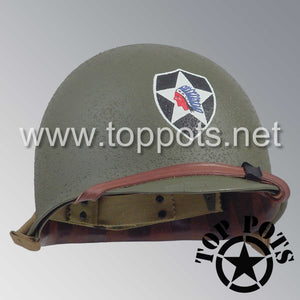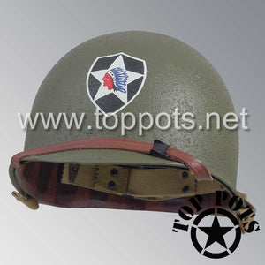 WWII US Army Restored Original M1 Infantry Helmet Swivel Bale Shell and Liner with 2nd Infantry Division Emblem