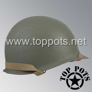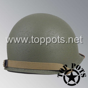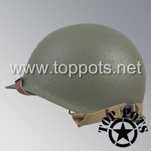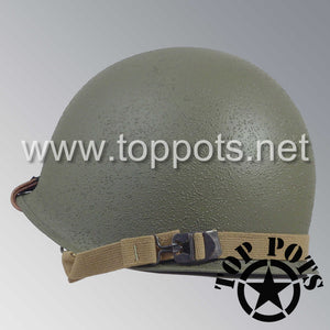 So, if you are looking for a US WWII swivel bale helmet with the most authentic Type II Mil-Spec 530 11 row weave chain-pattern and Herring Bone Twill suspension webbing, this is your helmet. This particular helmet represents the standard model, which would have been used in combat operations such as D Day, Operation Market Garden and the Battle of Okinawa. This is simply the best WWII M1 helmet for re-enactors, air-soft clubs and collectors made exclusively by Top Pots.