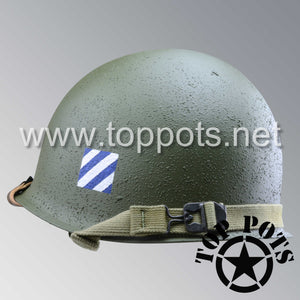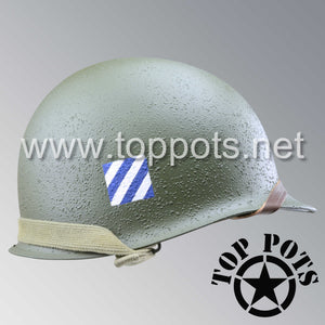 WWII US Army Restored Original M1 Infantry Helmet Swivel Bale Shell and Liner with 3rd Infantry Division 5th Regiment Emblem