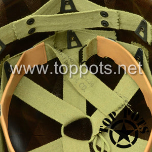 So, if you are looking for a US WWII swivel bale helmet with the most authentic Type II Mil-Spec 530 11 row weave chain-pattern and Herring Bone Twill suspension webbing, this is your helmet. This particular helmet represents the standard model, which would have been used in combat operations such as D Day, Operation Market Garden and the Battle of Okinawa. This is simply the best WWII M1 helmet for re-enactors, air-soft clubs and collectors made exclusively by Top Pots.