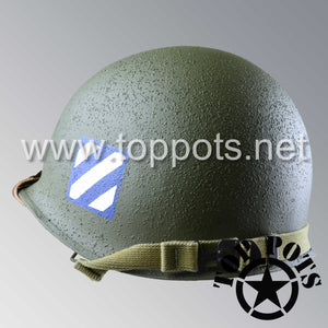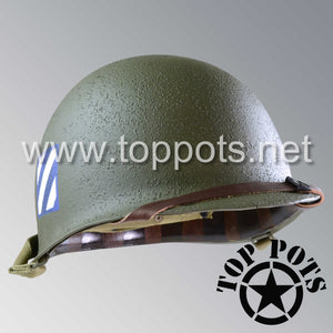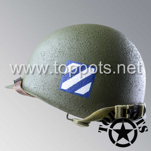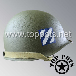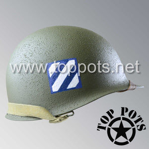 WWII US Army Restored Original M1 Infantry Helmet Swivel Bale Shell and Liner with 3rd Infantry Division Emblem - Schlueter Shell
