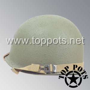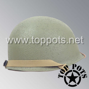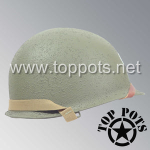 So, if you are looking for a US WWII swivel bale helmet with the most authentic Type II Mil-Spec 530 11 row weave chain-pattern and Herring Bone Twill suspension webbing, this is your helmet. This particular helmet represents the standard model, which would have been used in combat operations such as D Day, Operation Market Garden and the Battle of Okinawa. This is simply the best WWII M1 helmet for re-enactors, air-soft clubs and collectors made exclusively by Top Pots.