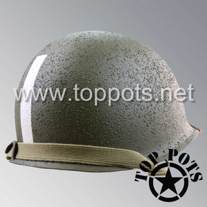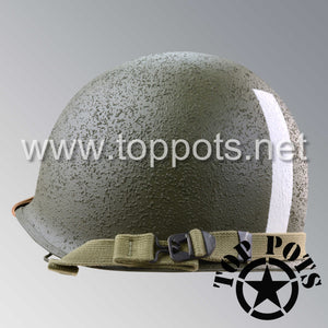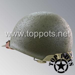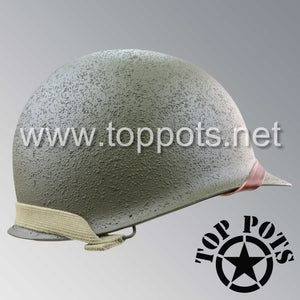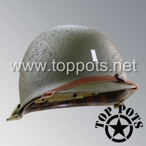 So, if you are looking for a US WWII swivel bale helmet with the most authentic Type II Mil-Spec 530 11 row weave chain-pattern and Herring Bone Twill suspension webbing, this is your helmet. This particular helmet represents the standard model, which would have been used in combat operations such as D Day, Operation Market Garden and the Battle of Okinawa. This is simply the best WWII M1 helmet for re-enactors, air-soft clubs and collectors made exclusively by Top Pots.