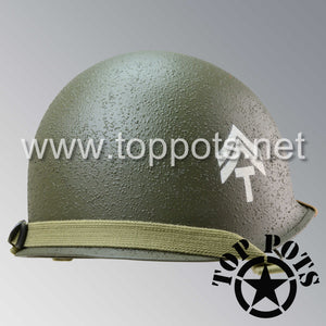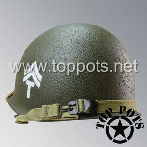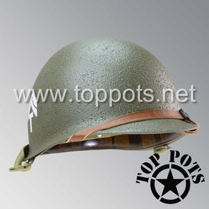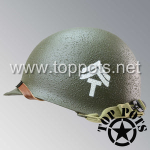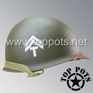 WWII US Army Restored Original M1 Infantry Helmet Swivel Bale Shell and Liner with Tech 5th Class Grade 5 Emblem