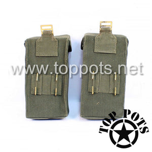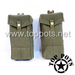 This is a reproduction of the WWII British Army Reproduction P37 Canvas Battle Order Webbed Equipment Set made with Khaki Green Webbing, as issued to the Australian forces. It consists of P37 webbed belt, two ammunition pouches, two braces, L straps, small pack and water bottle carrier. Waist belt and length of braces will be personally confirmed before shipment.