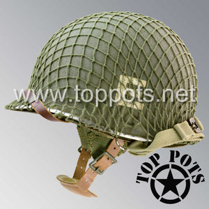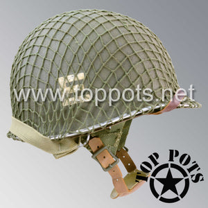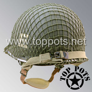 So, if you are looking for a US WWII D ring helmet with the most authentic Type II Mil-Spec 530 11 row weave chain-pattern, A yoke and Herring Bone Twill suspension webbing, this is your helmet. This particular helmet represents the earlier model, which would have been used in combat operations such as the D Day jump into Normandy. This is simply the best WWII M2 helmet for re-enactors, air-soft clubs and collectors made exclusively by Top Pots.
