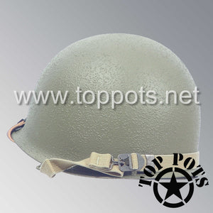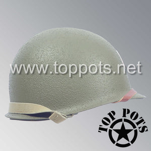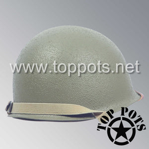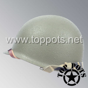 So, if you are looking for a US WWII swivel bale helmet with the most authentic Type II Mil-Spec 530 11 row weave chain-pattern and Herring Bone Twill suspension webbing, this is your helmet. This particular helmet represents the standard model, which would have been used in combat operations such as D Day, Operation Market Garden and the Battle of Okinawa. This is simply the best WWII M1 helmet for re-enactors, air-soft clubs and collectors made exclusively by Top Pots.