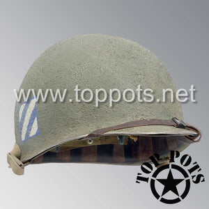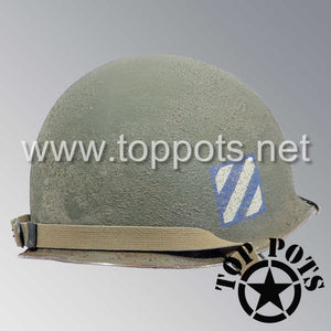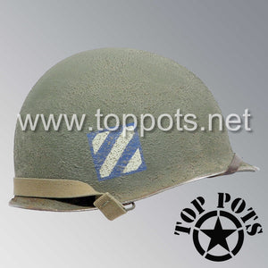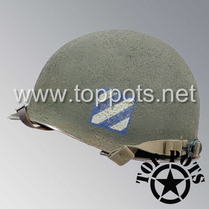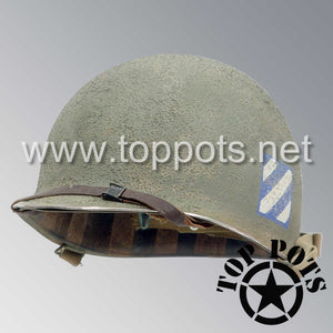 WWII US Army Aged Original M1 Infantry Helmet Swivel Bale Shell and Liner with 3rd Infantry Division Emblem