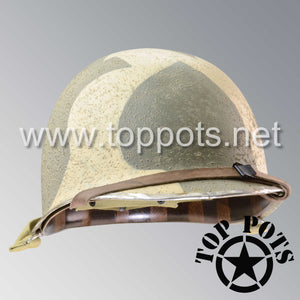 WWII US Army Aged Original M1 Infantry Helmet Swivel Bale Shell and Liner with 7th Infantry Division Camouflage Emblem