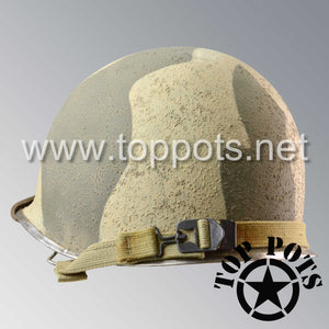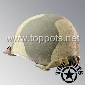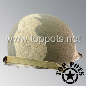 So, if you are looking for a US WWII swivel bale helmet with the most authentic Type II Mil-Spec 530 11 row weave chain-pattern and Herring Bone Twill suspension webbing, this is your helmet. This particular helmet represents the standard model, which would have been used in combat operations such as D Day, Operation Market Garden and the Battle of Okinawa. This is simply the best WWII M1 helmet for re-enactors, air-soft clubs and collectors made exclusively by Top Pots.