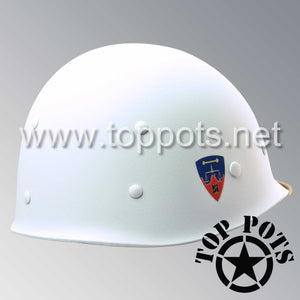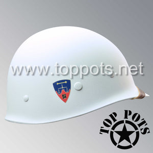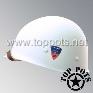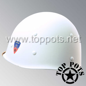 WWII US Army Restored Original M1 Infantry Helmet Liner with 2nd Infantry Regiment 1st Infantry Division Nuremberg Trial Emblem