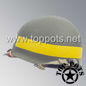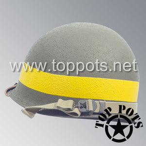 So, if you are looking for a US WWII swivel bale helmet with the most authentic Type II Mil-Spec 530 11 row weave chain-pattern and Herring Bone Twill suspension webbing, this is your helmet. This particular helmet represents the standard model, which would have been used in combat operations such as D Day, Operation Market Garden and the Battle of Okinawa. This is simply the best WWII M1 helmet for re-enactors, air-soft clubs and collectors made exclusively by Top Pots.