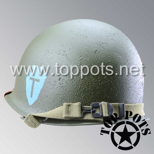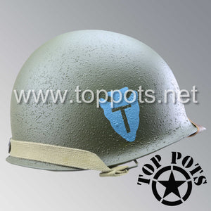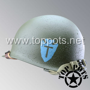 WWII US Army Restored Original M1 Infantry Helmet Swivel Bale Shell and Liner with 36th Infantry Division Emblem