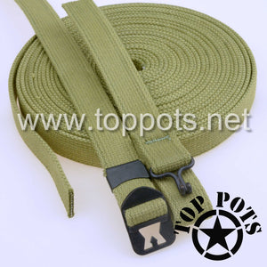 There are a limited amount of these, as we are using the production over-runs of shuttle loomed khaki chin strap webbing for these, as the balance is reserved for our helmets.  Again, all the webbing material is made on a set of original US WWII era shuttle looms that we obtained, purchased, restored and operate ourselves  For more information on what we achieved, please visit our page about WWII ERA US M1 HELMET WEBBING SHUTTLE LOOMS.