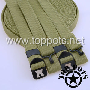 This is the premier set of US WWII era M-1 helmet infantry chin straps.  They are simply the best available in the market.  The material is produced from the only still functioning original US WWII era M1 helmet webbing shuttle looms still in existence.