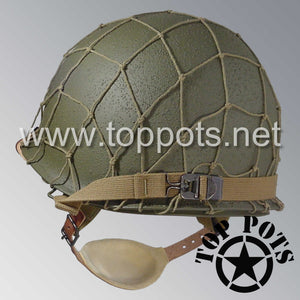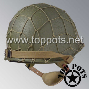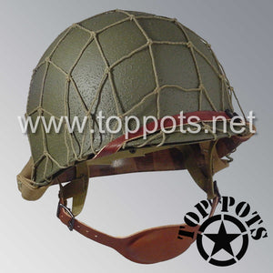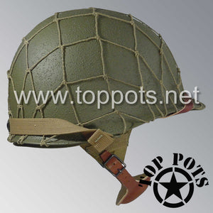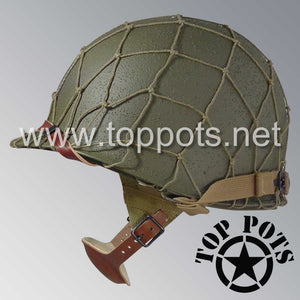 WWII US Army Restored Original M1C Paratrooper Airborne Helmet Swivel Bale Shell and Liner with Large Cargo Net