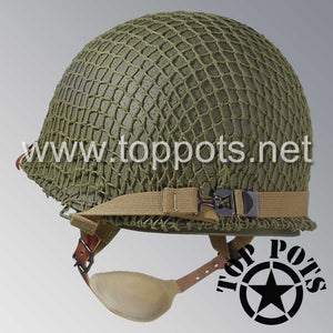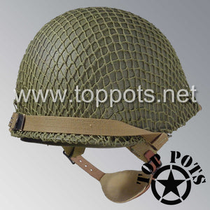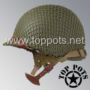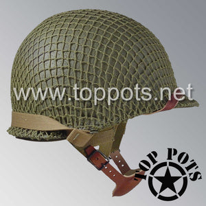 So, if you are looking for a US WWII M1C swivel bale jump helmet with the most authentic Type II Mil-Spec 530 11 row weave chain-pattern, A yoke and Herring Bone Twill suspension webbing, this is your helmet. This particular helmet represents the standard model, which would have been used in combat operations such as the D Day and Market Garden. This is simply the best WWII M1C paratrooper helmet for re-enactors, air-soft clubs and collectors made exclusively by Top Pots.