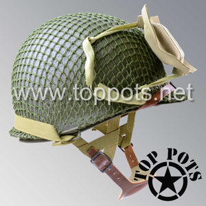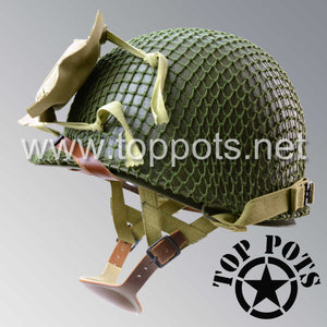 WWII US Army Restored Original M1C Paratrooper Airborne Helmet Swivel Bale Shell and Liner with Small Net and Medic Pack