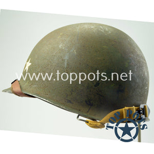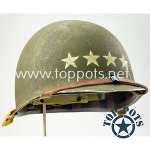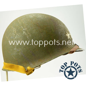 WWII US Army Aged Original M1 Infantry Helmet Swivel Bale Shell and Liner with Four Star General Stars