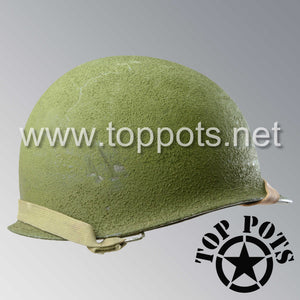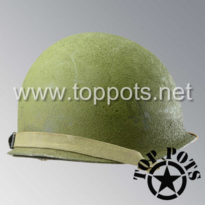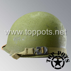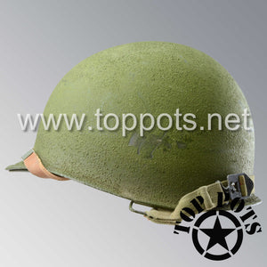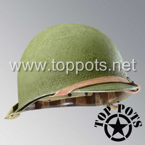 WWII US Army Aged Original M1 Infantry Helmet Swivel Bale Shell and Liner with Late War Finish