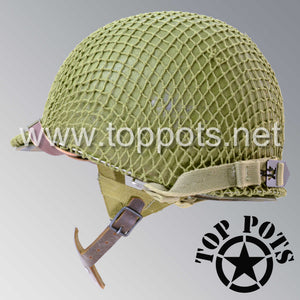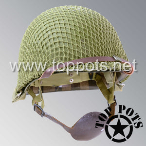 WWII US Army Aged Original M1C Paratrooper Airborne Helmet Swivel Bale Shell and Liner with Late War Finish and Net
