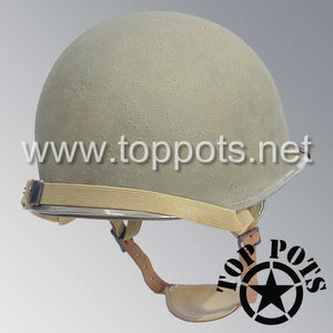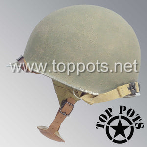 So, if you are looking for a US WWII D ring helmet with the most authentic Type II Mil-Spec 530 11 row weave chain-pattern, A yoke and Herring Bone Twill suspension webbing, this is your helmet. This particular helmet represents the earlier model, which would have been used in combat operations such as the D Day jump into Normandy. This is simply the best WWII M2 helmet for re-enactors, air-soft clubs and collectors made exclusively by Top Pots.