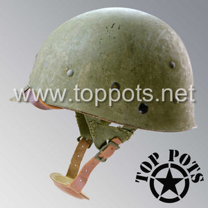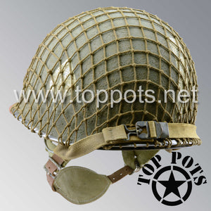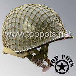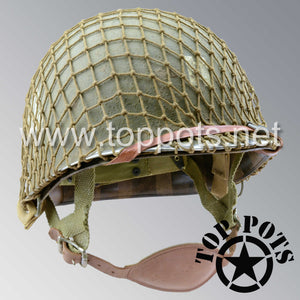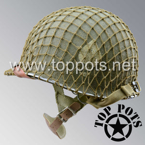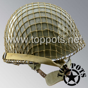So, if you are looking for a US WWII D ring helmet with the most authentic Type II Mil-Spec 530 11 row weave chain-pattern, A yoke and Herring Bone Twill suspension webbing, this is your helmet. This particular helmet represents the earlier model, which would have been used in combat operations such as the D Day jump into Normandy. This is simply the best WWII M2 helmet for re-enactors, air-soft clubs and collectors made exclusively by Top Pots.