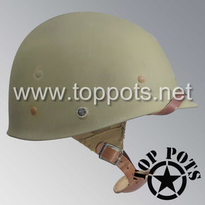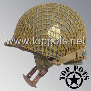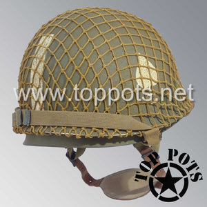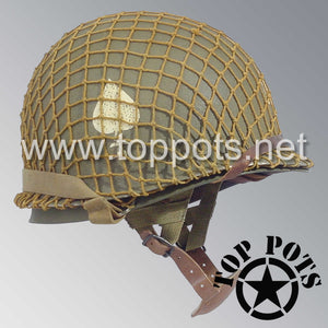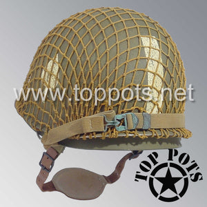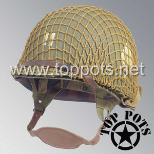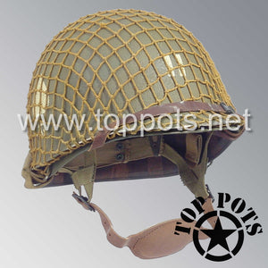 So, if you are looking for a US WWII D ring helmet with the most authentic Type II Mil-Spec 530 11 row weave chain-pattern, A yoke and Herring Bone Twill suspension webbing, this is your helmet. This particular helmet represents the earlier model, which would have been used in combat operations such as the D Day jump into Normandy. This is simply the best WWII M2 helmet for re-enactors, air-soft clubs and collectors made exclusively by Top Pots.