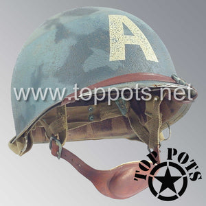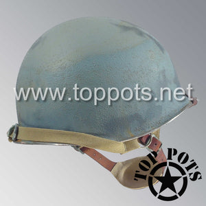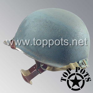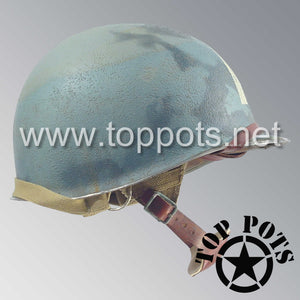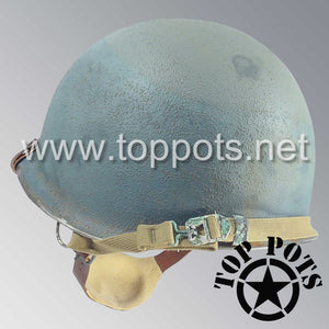 So, if you are looking for a US WWII D ring helmet with the most authentic Type II Mil-Spec 530 11 row weave chain-pattern, A yoke and Herring Bone Twill suspension webbing, this is your helmet. This particular helmet represents the earlier model, which would have been used in combat operations such as the D Day jump into Normandy. This is simply the best WWII M2 helmet for re-enactors, air-soft clubs and collectors made exclusively by Top Pots.