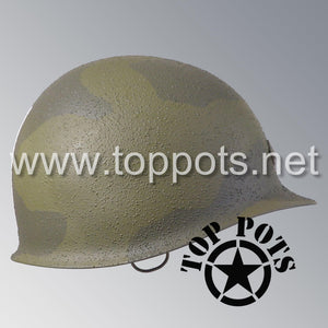 WWII US Army Restored Original M2 Paratrooper Airborne Helmet D Bale Shell with Pathfinder Camouflage Pattern and Officer Stripe (Chin Straps Included)