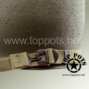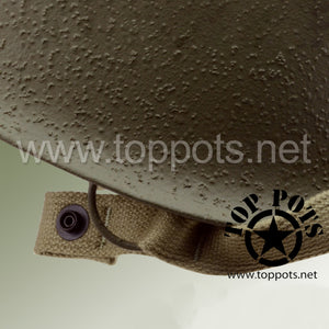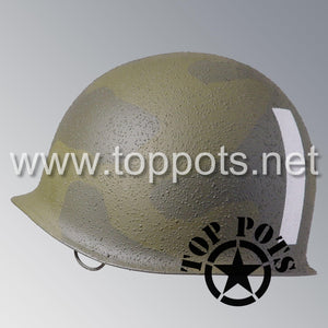 So, if you are looking for a US WWII D ring helmet, this is your helmet. This particular helmet represents the earlier model, which would have been used in combat operations such as the D Day jump into Normandy. This is simply the best WWII M2 helmet for re-enactors, air-soft clubs and collectors made exclusively by Top Pots.