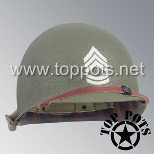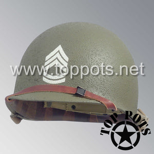 WWII US Army Restored Original M1 Infantry Helmet Swivel Bale Shell and Liner with Sergeant NCO Emblem - Sgt. Rock Comic Book