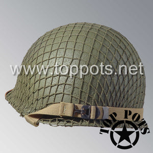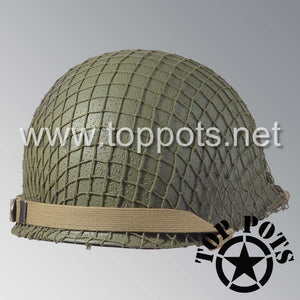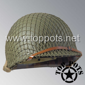 WWII US Army Restored Original M1 Infantry Helmet Fix Bale Shell and Liner with Early War Leather Chinstrap and OD 7 Net