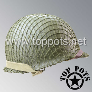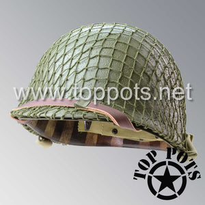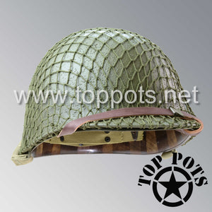 WWII US Army Restored Original M1 Infantry Helmet Fix Bale Shell and Liner with Olive Drab 7 Net